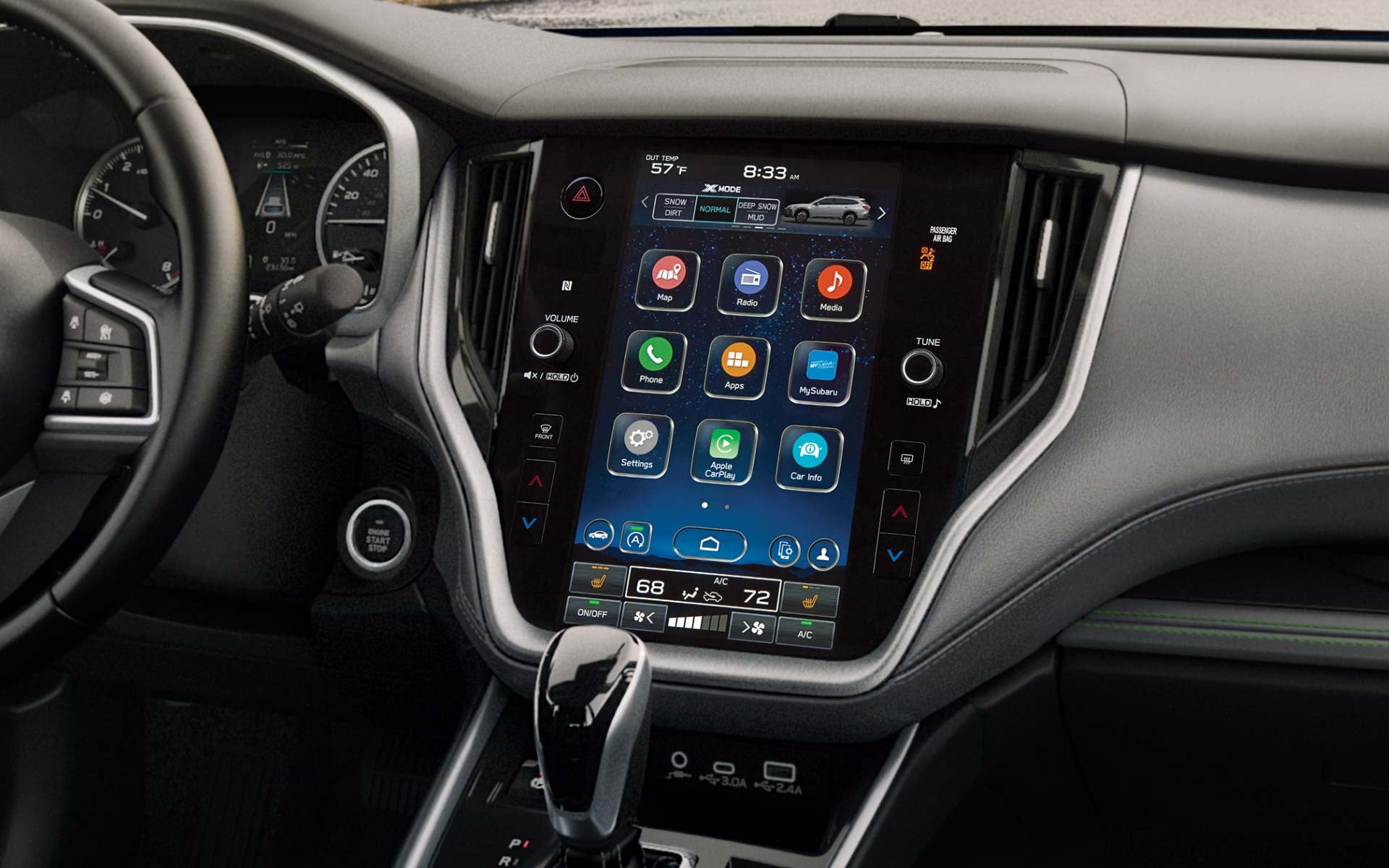 The versatile cargo area provides ample space for your gear, and the standard 60/40 split-folding rear seats offer flexible configurations. The Subaru Outback also boasts an array of advanced technologies, including a high-resolution touchscreen display with Apple CarPlay and Android Auto integration and an available Harman Kardon premium audio system, ensuring a connected and enjoyable driving experience.