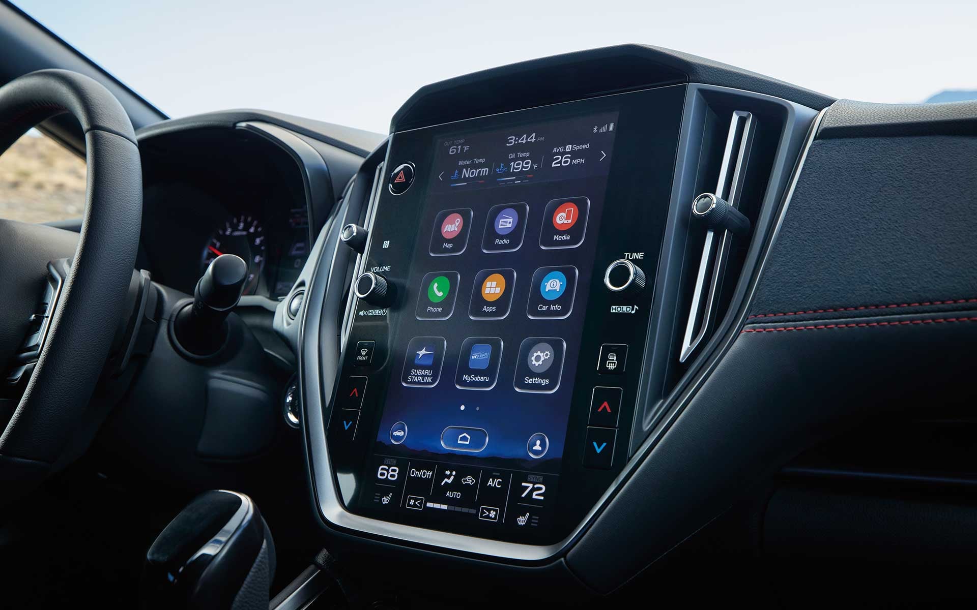 Power and performance don't stop with the WRX's engine. In the cab, you'll find an impressive 11.6-inch touchscreen you can use to follow navigation and control your media. A D-shaped steering wheel helps you take control of the road.