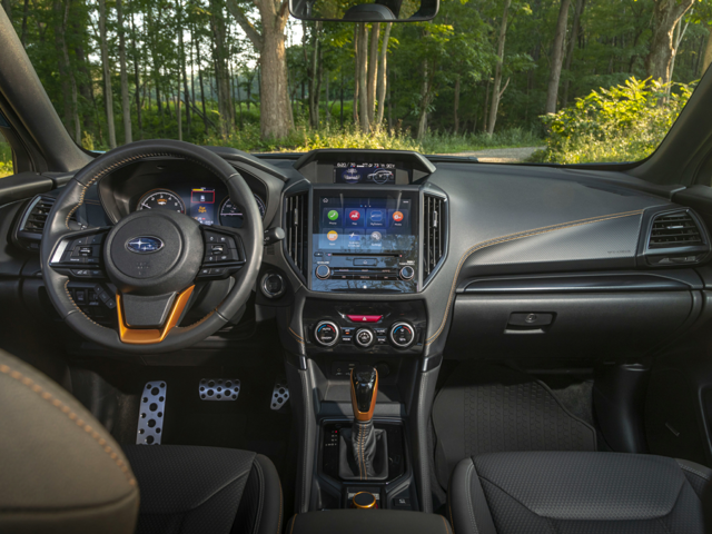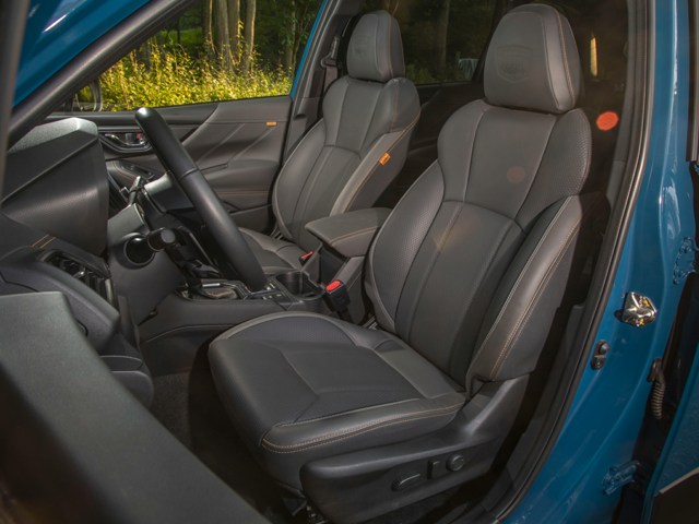 The Forester Base interior offers comfort with modern amenities, including a touchscreen infotainment system and smartphone connectivity. The Premium trim provides additional features, such as a power-adjustable driver's seat and a Wi-Fi hotspot for enhanced convenience. The Wilderness trim introduces water-repellent upholstery that aligns with its adventurous spirit. The Limited trim offers a luxurious feel with leather-trimmed upholstery and dual-zone automatic climate control. The Touring enhances the luxury quotient with a heated steering wheel and front seats.
