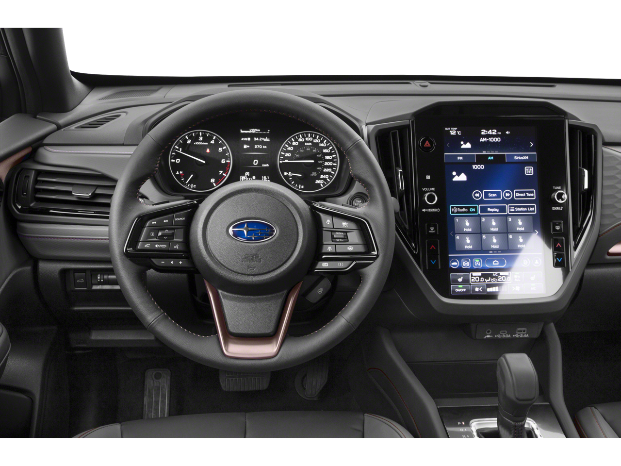 - Radio: Subaru 11.6" Multimedia Plus System -inc: valet mode, integrated center information display, AM/FM stereo HD Radio, multi-touch gesture high resolution display screen, voice activated controls, Bluetooth® audio streaming and hands-free phone connectivity w/SMS text messaging connectivity (refer to subaru.com for cell phone compatibility), iPod control capability, SiriusXM w/360L (4 months free trial/subscription required after), SiriusXM Travel Link (3 years free trial/subscription required after), smartphone integration for Android Auto and Apple CarPlay w/full screen view and wireless connection, USB and Over The Air (OTA) audio system update, steering wheel control switches for audio and Bluetooth®, 6 speakers, 3.5mm auxiliary input jack and roof mounted audio and satellite antenna